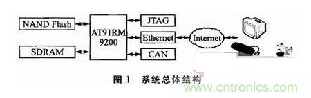 支持遠(yuǎn)程自動更新的嵌入式Linux系統(tǒng)機(jī)構(gòu),它可以分為嵌入式終端和遠(yuǎn)程管理系統(tǒng)兩部分。系統(tǒng)的總體結(jié)構(gòu)如圖1所示,嵌入式終端采用基于ARM9架構(gòu)的AT91RM9200微處理器,采用擴(kuò)展的32MB SDRAM,由2片16位數(shù)據(jù)寬度的SDRAM芯片HY57V281620并連而成,采用64MB NANDFla sh存儲芯片K9F1208,運(yùn)行嵌入式Linux系統(tǒng)。遠(yuǎn)程管理系統(tǒng)選用PC機(jī)。嵌入式終端通過以太網(wǎng)連接到遠(yuǎn)程管理系統(tǒng),管理人員可以通過telne t即可對各個嵌入式終端進(jìn)行監(jiān)控、管理和遠(yuǎn)程更新。