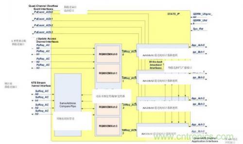 圖2中的STATS_IP架構模塊圖標出了三個子部件:每條通道的同地址比較管道(SACOMP)區塊、請求-復用-解復用(REQ_MXDMX_CHn)區塊以及每條QDR IV應用通道1個的4個A-B通道配對計數器邏輯(ABCH_CTRL_CHn)區塊實例。