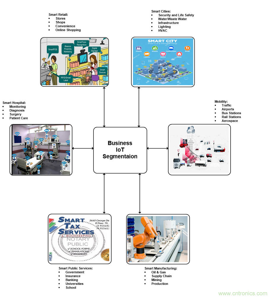 企業(yè)物聯(lián)網(wǎng)的覆蓋范圍巨大,包括零售、醫(yī)療、能源、出行、城市、制造業(yè)和公共服務(wù)。企業(yè)物聯(lián)網(wǎng)細(xì)分市場會(huì)改變組織和社區(qū),從而創(chuàng)造一個(gè)實(shí)現(xiàn)經(jīng)濟(jì)增長的新時(shí)代。物聯(lián)網(wǎng)通過連接數(shù)據(jù)、人員和機(jī)器來提高生產(chǎn)力、生產(chǎn)效率以及日常運(yùn)營水平。企業(yè)物聯(lián)網(wǎng)也可以作為幫助企業(yè)識(shí)別未開發(fā)領(lǐng)域新增長機(jī)會(huì)的工具。