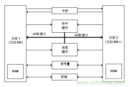 中斷法:這種方法讓一個(gè)內(nèi)核向另一個(gè)內(nèi)核發(fā)送一個(gè)中斷來指示一個(gè)應(yīng)用程序事件。通常中斷程序非常緊湊,不會(huì)占用太多的代碼存儲(chǔ)空間。與任何中斷機(jī)制一樣,每個(gè)中斷都有自己的 ISR(中斷服務(wù)程序),通過它可以讓相應(yīng)的內(nèi)核執(zhí)行特定的任務(wù)。在實(shí)際的數(shù)據(jù)傳遞中,有一個(gè)可以被多個(gè)內(nèi)核訪問的共享內(nèi)存。除了共享數(shù)據(jù)之外,它還提供了請(qǐng)求和確認(rèn)消息的機(jī)制。