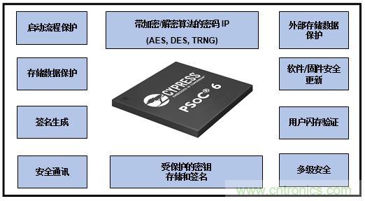 與固件相比,安全硬件還具有提供更快性能和更低功耗的優(yōu)勢(shì)。比如,賽普拉斯 PSoC 6 BLE MCU 中的專用加密模塊可加速加密功能。此外,該模塊提供了真隨機(jī)數(shù)生成功能、對(duì)稱密鑰加密和解密、哈希、消息認(rèn)證、隨機(jī)數(shù)生成(偽隨機(jī)和真隨機(jī))、循環(huán)冗余校驗(yàn)以及諸如啟用/禁用、中斷設(shè)置和標(biāo)記等實(shí)用功能。該 MCU 組件還配備了安全啟動(dòng)功能。該功能使用 ROM 程序在閃存中驗(yàn)證用戶數(shù)據(jù)。安全啟動(dòng)是一項(xiàng)包含加密技術(shù)的過程,它使物聯(lián)網(wǎng)設(shè)備開始執(zhí)行已認(rèn)證的可信軟件。因此,系統(tǒng)可以從一個(gè)已知、可信的狀態(tài)開啟。