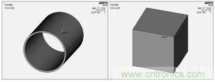 網格劃分對有限元的求解及其重要,單元越小,網格越細,則離散域的近似度越好,計算結果也越精確,但計算量及誤差都將增大。本文建立的線圈模型是一個規則的柱體,采用體掃掠方式劃分網格。空氣模型經過澆筑之后形狀變得復雜,采用自由方式劃分網格。圖2為線圈和空氣的有限元模型,最后通過numcmp命令將其澆筑在一起。