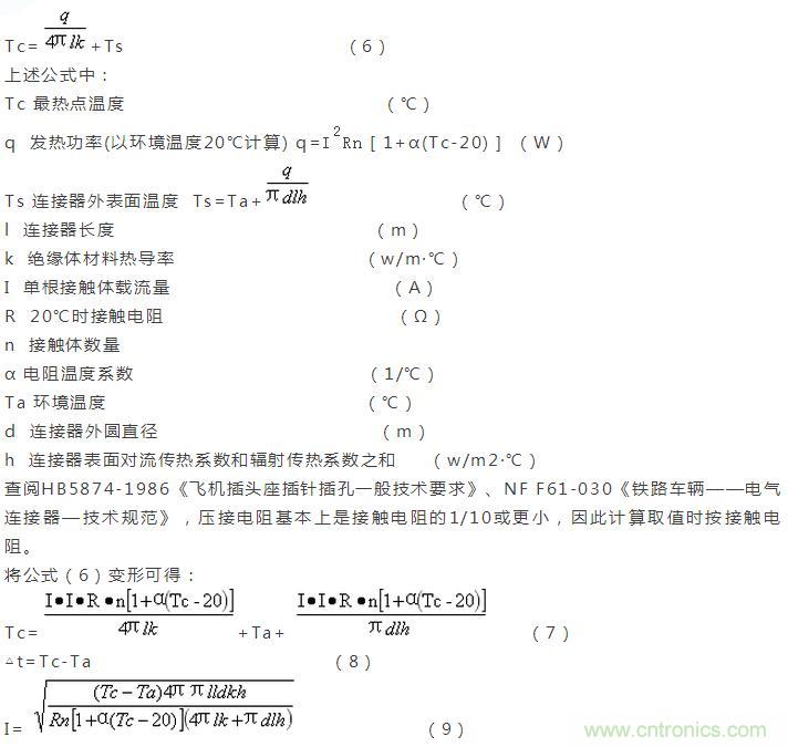依據(jù)熱力學(xué)熱傳導(dǎo)、熱對流、熱輻射理論,整理出電連接器最熱點(diǎn)溫度計(jì)算公式: