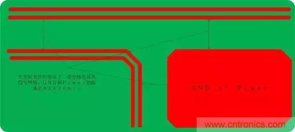 6.為了減少串擾,在空間允許的情況下,其他信號網絡及地離差分線的間距至少20mil(20mil是經驗值),覆地與差分線的距離過近將對差分線的阻抗產生影響;