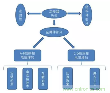由于Rco的實(shí)際應(yīng)用值超出了設(shè)計(jì)值,因此同樣的電流在該部位產(chǎn)生的熱量就會(huì)增加進(jìn)而導(dǎo)致溫度升高,這種狀況還會(huì)因?yàn)楦邷厮鶎?dǎo)致一系列后果(例如氧化、老化等等)而進(jìn)一步加劇。這種惡性循環(huán)所帶來的最終結(jié)果就是連接器燒毀。