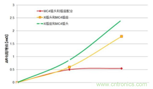 此外,盡管有些連接器在與MC4互插后電阻增加不明顯,但這同樣不能保證互插連接器在經(jīng)過幾個(gè)月甚至幾年之后電阻的穩(wěn)定性。這也就是大部分不同廠家的連接器在互插并使用一段時(shí)間后才發(fā)生問題的原因。