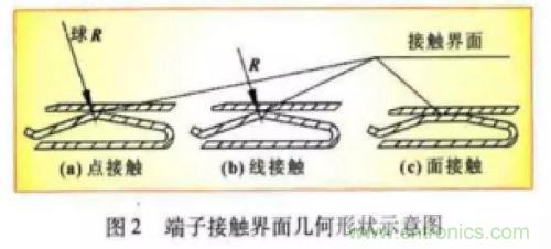 幾何形狀的影響端子接觸界面幾何形狀對接觸電阻的影響主要是由于不同的幾何形狀會形成不同的宏觀接觸面積。