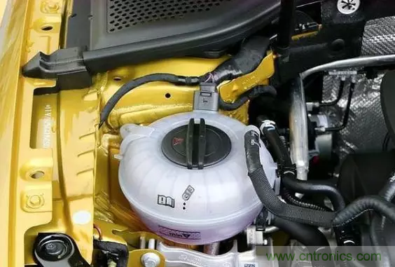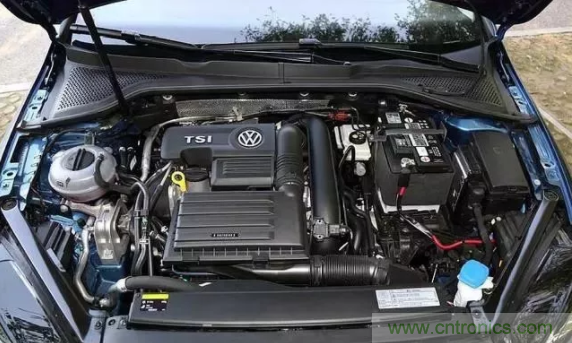 打開(kāi)高爾夫的機(jī)艙蓋,發(fā)現(xiàn)機(jī)艙里面的管路,線(xiàn)束顯得有點(diǎn)零亂。