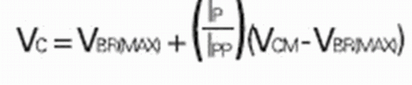 假設(shè)二極管的電壓是VBR(MAX)(最壞情形中的導(dǎo)電開(kāi)端)和VCM(對(duì)應(yīng)于最大電流IPPM的箝位電壓)之間電流的線性函數(shù),并且VBR(MAX)位置的電流相對(duì)于IPPM可忽略不計(jì),則中等電流時(shí)箝位電壓的保守估算值為