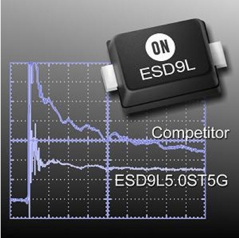 圖2:安森美半導(dǎo)體ESD9L的ESD保護(hù)性能明顯優(yōu)越于競(jìng)爭(zhēng)器件。
