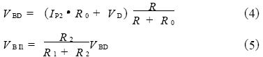設二極管正向壓降為VD , 分壓電阻R1、R 2、R 3、R 4 對R0的影響可以用等效電阻R= (R 1 + R 2 ) ∥ (R 3 +R 4) 來表示, 則在正常工作時, 滿足