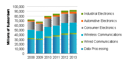 - 全球導體市場2010年也將增長13.7% 到2610億美元