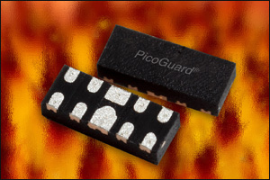 California Micro Devices 宣布針對最先進的數字消費品和計算機應用推出一款超低電容靜電放電 (ESD) 裝置PicoGuard CM1227。CM1227提供四通道+/-15kV接觸靜電放電保護,并且超越了IEC61000-4-2的四級標準。數字電視、機頂盒、計算機和計算機外圍設備等當今最先進的數字消費品和計算機應用正越來越多地采用先進高速串行接口,如USB3.0、MIPI(R)、eSATA、DisplayPort和FireWire。