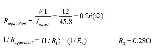 第二步:確定R2。在Inrush的初始狀態,白熾燈的等效電路呈現出電容的特性:即在很短暫的時間到達峰值電流后,又被衰減成穩態電流。因此,還需要在電容的回路上串聯一個電阻(R2)。