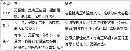 輸出電容類型的選擇應取決于合適的ESR,以符合穩定負載線路范圍,同時應進行下列項目的評估:
