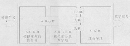 以一塊精度為萬分之一的數模轉換卡為例說明單點接地在實際工程中的應用方法。