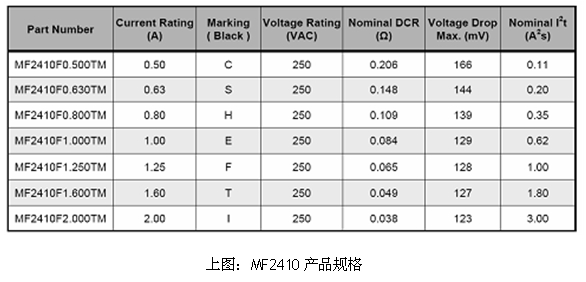 * MF2410 貼片保險(xiǎn)絲規(guī)格介紹