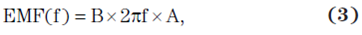 EMF 為以伏特為單位的電勢,f 為磁場頻率,而 A 為以平方米 (m2) 為單位的環路面積。