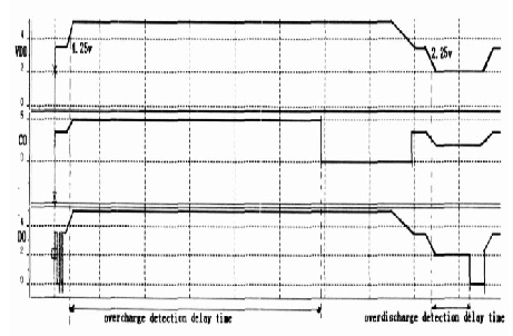 圖5為過充與過放電檢測的HSPICE仿真時序圖,從中可以看出,當比較器檢測到電池過充,在這里過充檢測點為4. 25V,且該狀態保持時間達到過充電檢測延遲時間,在這里約為1. 2秒, CO輸出低電平,關斷充電用FET2,停止充電。當檢測到電池過放電,這里過放電檢測點為2. 25V,且該狀態保持時間達到過放電檢測延遲時間約150毫秒,DO輸出低電平,關斷放電用FET1,停止放電。其它如放電過流檢測等功能經HSP ICE仿真完全符合要求,在這里不一一列出。