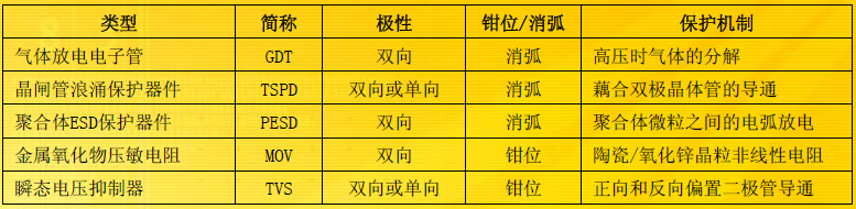 市場上有一系列對電子系統(tǒng)起保護(hù)作用的產(chǎn)品。下表簡單描述了各種產(chǎn)品的特征。