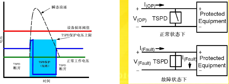 消弧保護(hù)器件:當(dāng)一個(gè)激勵觸發(fā)時(shí),通常是產(chǎn)生一個(gè)短路通道來實(shí)現(xiàn)保護(hù)目的。如晶閘管浪涌保護(hù)器件TSPD