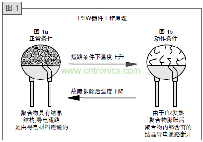 在正常工作狀態中此器件電阻值遠小于電路中的其余的電阻。但是對過流情況做出反應,器件電阻提高(動作),從而將電路中的