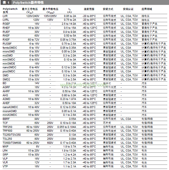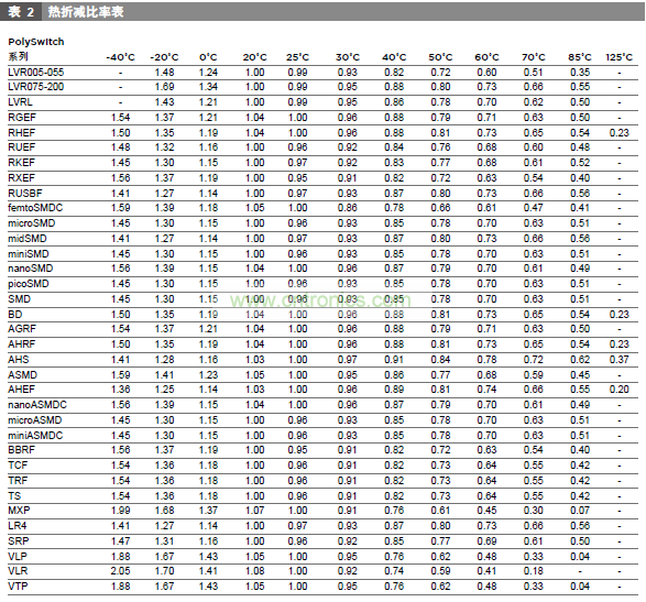 確保應用場合的最小和最大環境溫度在PolySwitch器件的操作溫度范圍內。大多數PolySwitch器件的操作溫度范圍介于-40℃到85℃,某些特殊情況下會達到125℃。