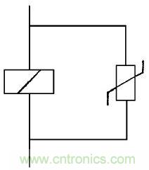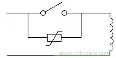 圖9中在繼電器、電磁鐵、磁力開(kāi)關(guān)、電磁閥門(mén)的線圈兩端并接壓敏電阻, 能吸收線圈兩端存貯的能量, 延長(zhǎng)線圈使用壽命, 防止頻繁開(kāi)關(guān)產(chǎn)生噪音的輻射。