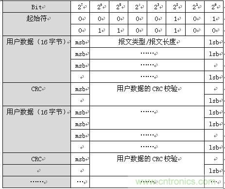 (5) 用戶數據之后跟隨一個16位的CRC校驗序列,由下列多項式生成校驗,序列碼為X16+X13+X12+X11+X10+X8+X6+X5+X2+1,生成的16比特校驗序列再取反成為所要求的校驗序列。