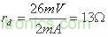 rd是用以Q點為切點的切線斜率的倒數。顯然,Q點在伏安特性上的位置不同,rd的數值將不同。根據二極管的電流方程