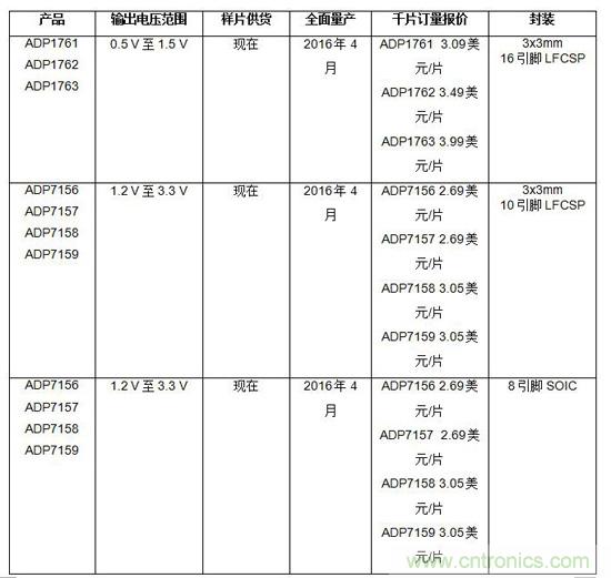 ADP176x和ADP715x LDO的目標應用包括:無線基站、有線通信、工業(yè)儀器儀表、高端音頻設備和醫(yī)療設備。 這些最新的LDO能為噪聲敏感型精密模擬和RF應用——尤其是需要更高的數(shù)據(jù)速率時——提供更干凈的供電軌、更快的瞬態(tài)響應和更高的電源電壓抑制比(PSRR)。
