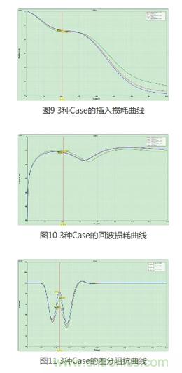 下面是Case1,Case2,Case3三種情況下AC耦合電容插入損耗,回波損耗以及差分阻抗曲線,分別如圖9,圖10及圖11所示。這里使用SnpExpert對S參數進行比較。