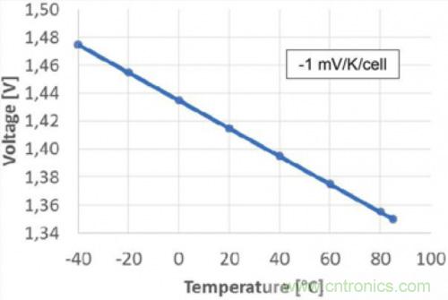 這兩個(gè)效應(yīng)導(dǎo)致每個(gè)電芯具有-1 mV / 1 °C的線性電壓相依性。