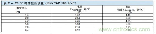 表2顯示了20 °C時(shí)標(biāo)準(zhǔn)配置的正確充電電壓。