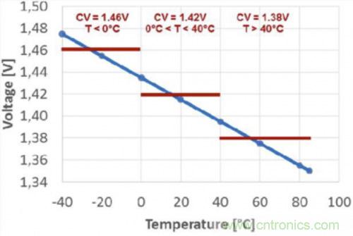 如能提供兩種或三種充電電壓,則有可能在整個(gè)溫度范圍上實(shí)現(xiàn)逐步逼近(見圖3)。