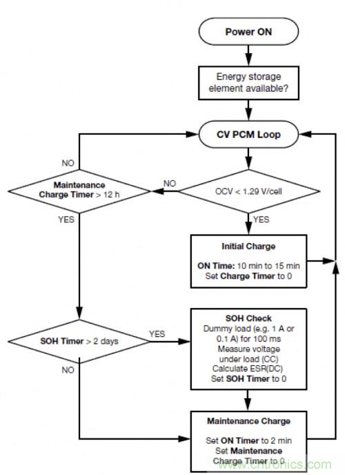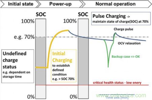 注:第2-5步補(bǔ)償自放電效應(yīng)并通過這種涓流充電使儲能元件保持健康狀態(tài),同時(shí)還維持更長的時(shí)間。