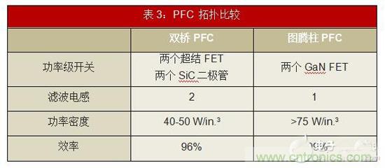 表3總結了這種無橋PFC設計的幾個主要優點,并做了進一步闡述:
