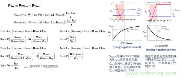 對于高頻應(yīng)用(>MHz),控制管Q1的選用應(yīng)針對降低開關(guān)損耗進(jìn)行優(yōu)化。Q1損耗的計算公式如下: