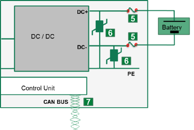 6.CAN 總線-ESD 和瞬變保護(hù)。OBC 通過 CAN 總線與BMS 等其他系統(tǒng)進(jìn)行通信。在密集封裝的環(huán)境下,CAN 線路經(jīng)常會受到 ESD(例如在裝配和維護(hù)過程中)的過電壓應(yīng)力和由其他汽車系統(tǒng)通過感應(yīng)耦合或傳導(dǎo)耦合引起的瞬變的影響。