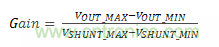 計算放大器的增益。運算放大器放大VSHUNT以產生VOUT_MIN到VOUT_MAX的輸出電壓擺幅,其中VOUT_MIN 和VOUT_MAX分別是放大器的最小和最大輸出擺幅極限。公式3用于計算放大器產生所需的輸出擺幅的增益: