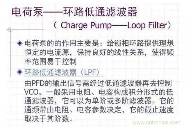 基本構成電路分析鑒相器(Phase Detector)電荷泵——環(huán)路低通濾波器(Charge Pump——Loop Filter )壓控振蕩器(Voltage Controlled Oscillator)分頻器(DIV)