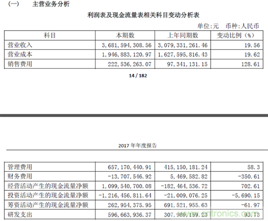 匯頂科技近日還發(fā)布了2017年年度報告以及2018年第一季度報告,報告顯示,公司2017年實現銷售收入約36.82億元,同比增長19.56%;歸屬于上市公司股東的凈利潤為8.87億元,同比增長3.52%。