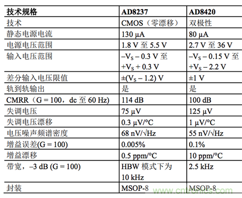 表 2 是對(duì)兩款儀表放大器進(jìn)行了比較。都使用了最小和最大規(guī)格。有關(guān)更多詳情和最新信息,請(qǐng)參見產(chǎn)品數(shù)據(jù)手冊(cè)。