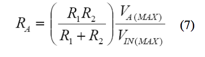 為了找到一個(gè) RA值以允許最大失調(diào)調(diào)整范圍 VIN(MAX),在給定調(diào)整電壓范圍 VA(MAX)的情況下,使 VOUT = 0,求 RA,結(jié)果得到