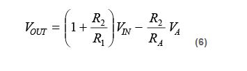 如果相對(duì)于原始等式中的 VREF 取 VOUT 和 VA,則可得到相同的結(jié)果。VA(MAX) – VREF 也應(yīng)替換等式(7)中的 VA(MAX)。