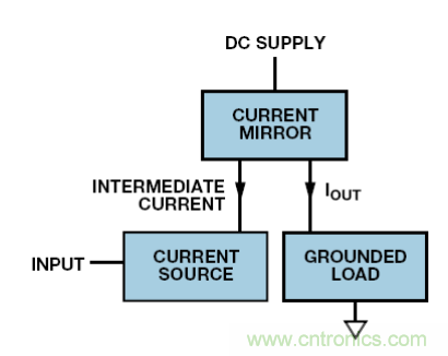 若電流或電壓輸入?yún)⒖嫉兀瑒t必須使用電平轉(zhuǎn)換。有多個(gè)電路可以實(shí)現(xiàn);而圖 8 中的系統(tǒng)在很多場合下都適用。這款簡單的電路采用接地電流源驅(qū)動(dòng)直流電源上的電流鏡,從而驅(qū)動(dòng)負(fù)載。注意,電流鏡可能有增益,因此信號(hào)電流不需要像負(fù)載電流那么高。