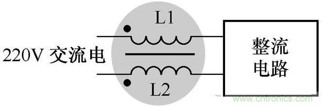 這一抗干擾電路串聯(lián)在交流電回路中。L1、L2不需要接地線,所以安全性能比較好。