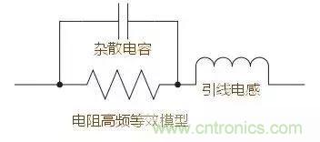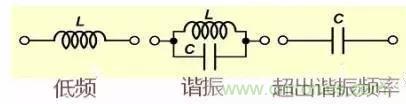 電感線圈在低頻、諧振及工作頻率高于諧振頻率時會呈現(xiàn)不同的特性,特別是當工作頻率超過諧振頻率是電感不再是電感而變成的電容。圖中的電容是線圈的匝間電容。