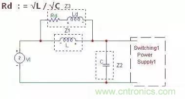 如圖:在電感上并聯(lián)一個電阻與電感串聯(lián)的電路,這稱為串聯(lián)阻尼法,效果與并聯(lián)阻尼相同,不足之處是由于在原電感上并聯(lián)電阻電感后對高頻干擾信號的衰減差一點,這是顯而易見的。事實上大部分的實際應(yīng)用中Ld 都被省略了,僅僅在電感上并聯(lián)一個電阻,這個電阻稱為阻尼電阻,目的與前述一樣防止在截止頻率處把干擾信號放大,實際使用中阻尼效果還是不錯的。