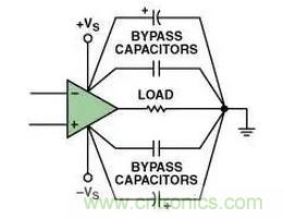 在放大器的電源端旁路電源以便降低噪聲是PCB設計過程中一個很重要的方面——包括對高速運算放大器還是其它的高速電路。旁路高速運算放大器有兩種常用的配置方法。